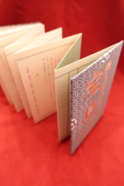 貴重な和柄生地のデッドストックを使ったクロス装ハードカバーで、本文は蛇腹になっています。