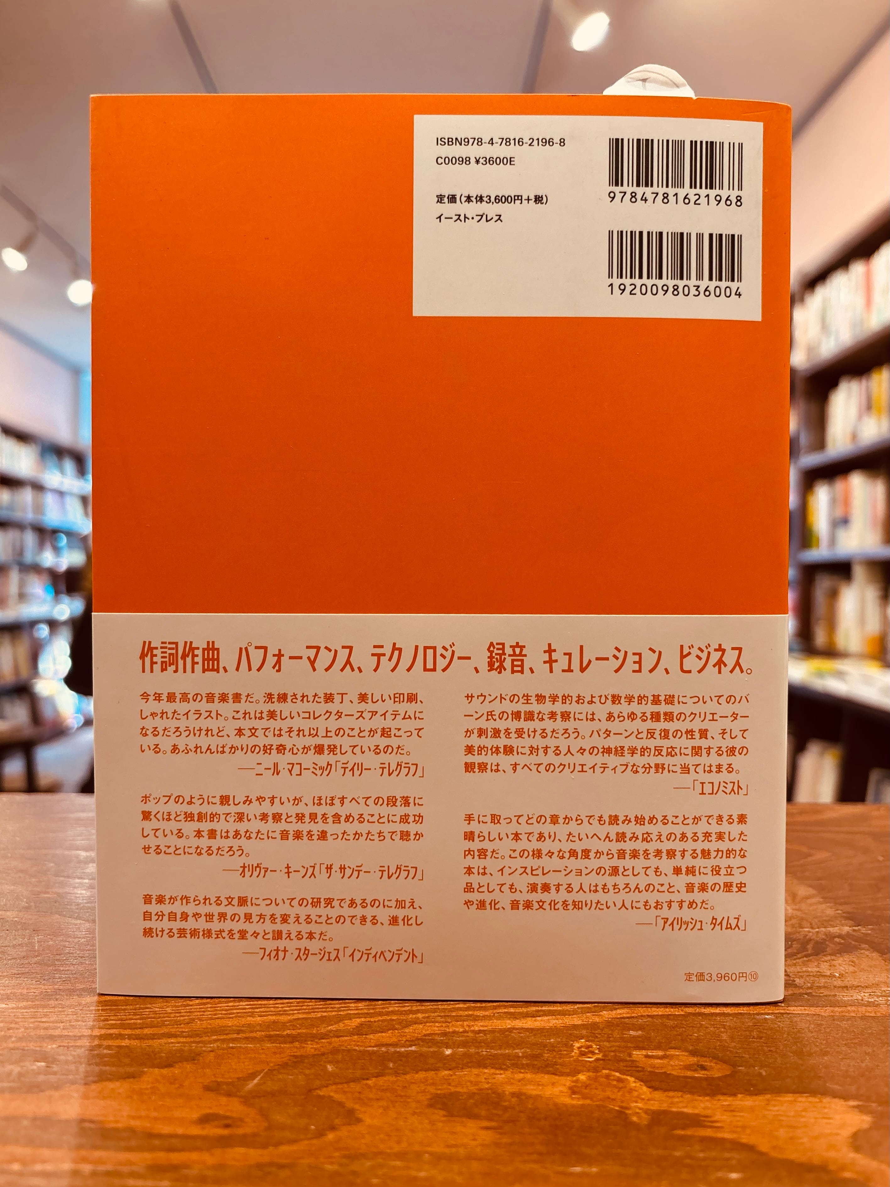 サウンドの生物学的および数学的基礎についてのバーン氏の博識な考察には、あらゆる種類のクリエーターが刺激を受けるだろう。パターンと反復の性質、そして美的体験に対する人々の神経学的反応に関する彼の観察は、すべてのクリエイティブな分野に当てはまる。―「エコノミスト」